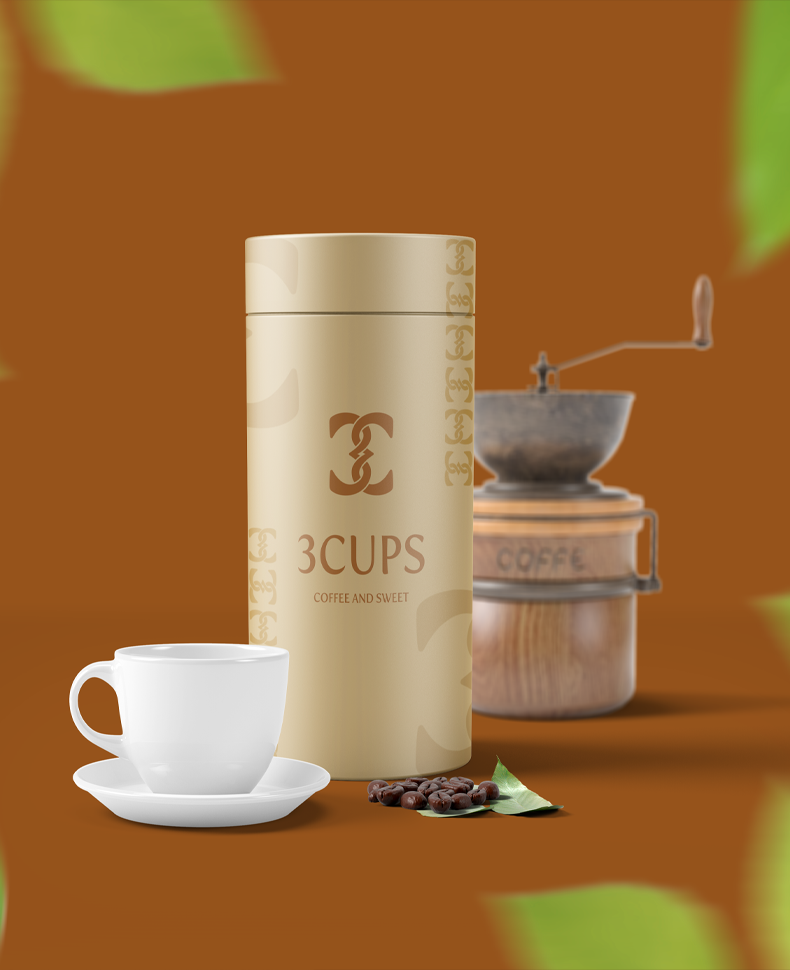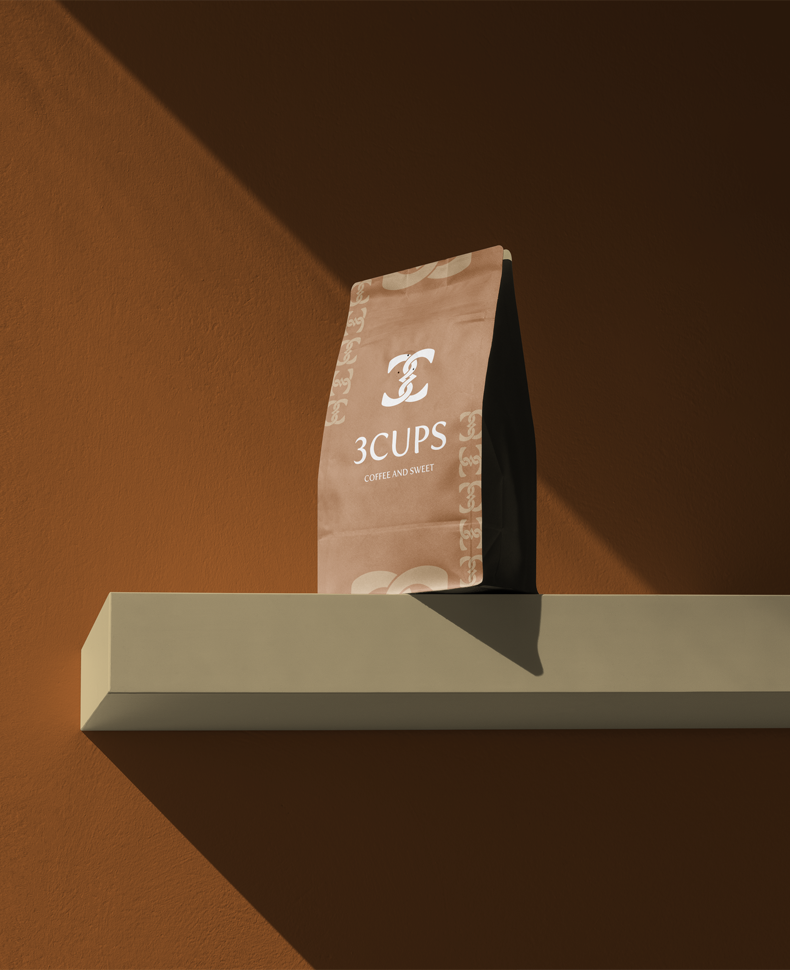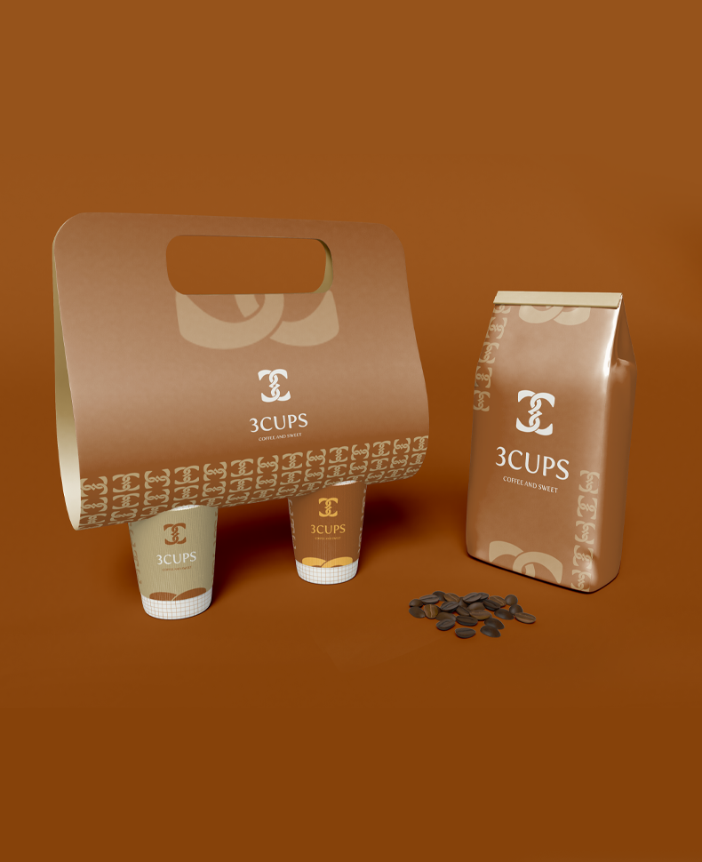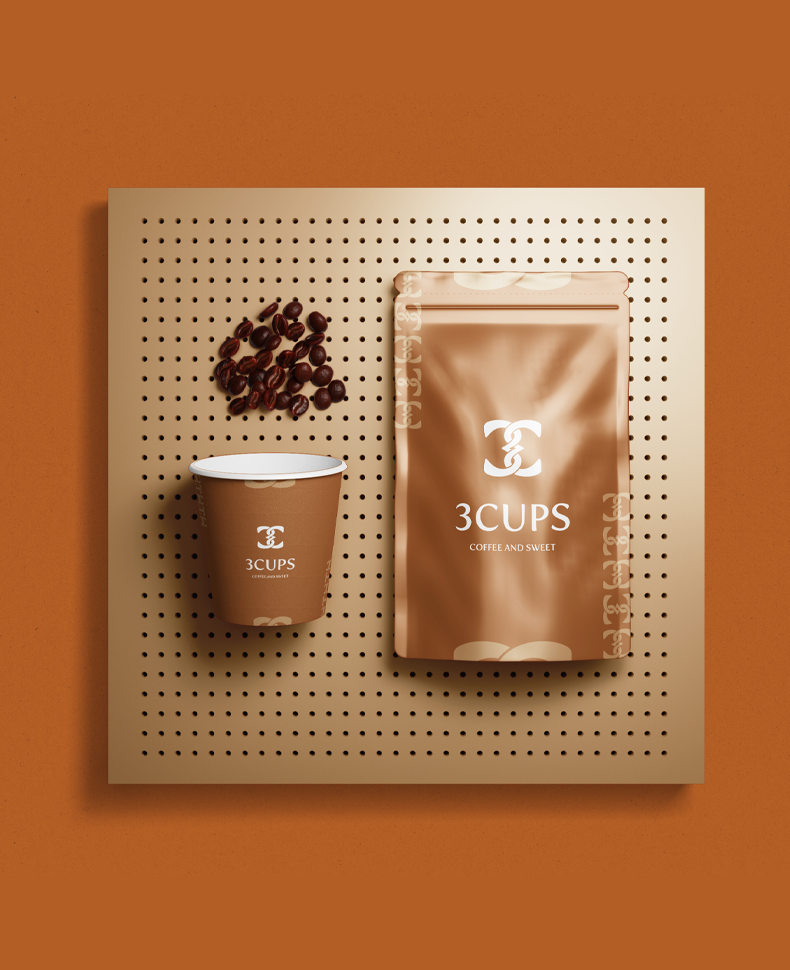 ألوان القهوة البنية الدافئة، مع شعار يدمج بين الحرف الإنجليزي (C) وتعرجات تدل على الرقم (3)، يشكلان معًا رمزًا مميزًا يحمل قيمة الترابط والانسجام، تمامًا كما تشعر في جلسة مع أصدقائك و3 أكواب من القهوة.
