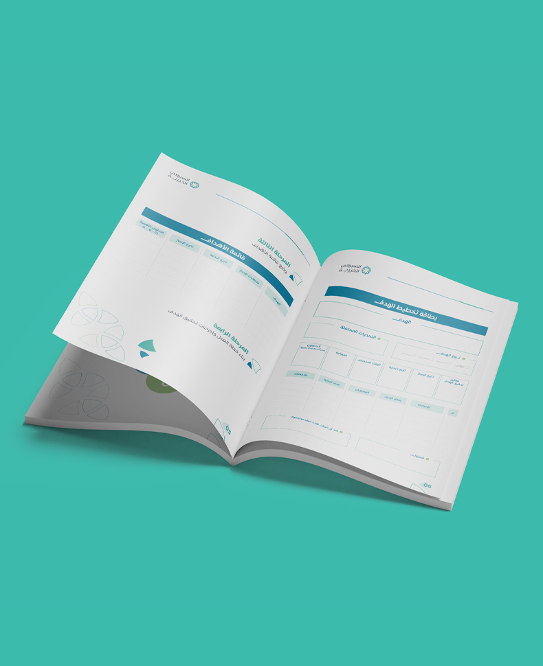 الحقيبة التدريبية لأحد برامج مؤسسة السبيعي الخيرية، حقيبة متكاملة تشتمل على الأدلة والأدوات والأنشطة، صممناها بالكامل بشكل تفاعلي، ومزوّدة بالجداول والرسوم التوضيحية والملخّصات للمحتوى والأنشطة، مع إبراز هوية الشركة بشكل جميل ومنسجم.