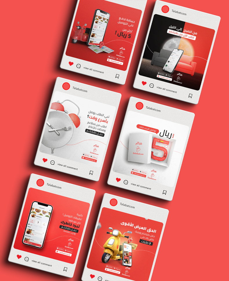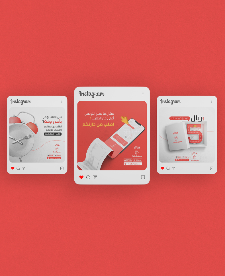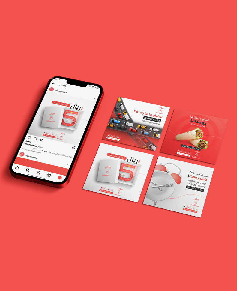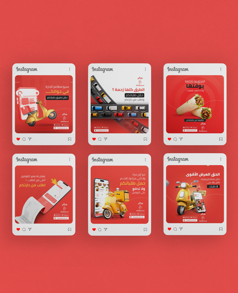 تصاميم السوشل ميديا لتطبيق التوصيل المبتكر (طلباتكم)، محتوى إبداعي وأصيل، يفهم أسلوب الفئة المستهدفة، ويلفت الانتباه للخدمة، وتصاميم جرافيكية مميزة تنبض بالحياة، لتساعد على إيصال رسائل الحساب، وتحقيق أهداف الخطة التسويقية.