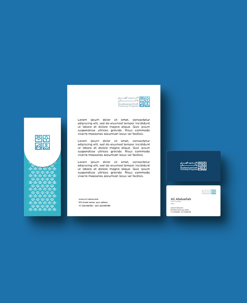 تعتمد الهوية البصرية (التدريب المهني والحرفي) التابعة لبنك التنمية الإجتماعية على رسم أيقوني برمزية تشير للنشاط بأفرعه المتعددة، حيث تشكّل بمجموعها رمزًا لنافذة مفتوحة، لتوحي بالفرص التي يمنحها المشروع لمستفيديه، وكل جزء منها يرمز لفكرة مختلفة يتمحور عليها المشروع.