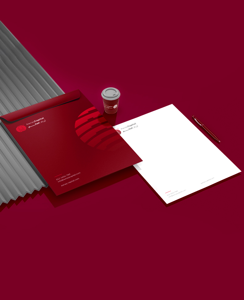 وتم اعتماد اللون الأحمر للدلالة على الأهمية، واللون الرمادي لإضفاء الحيادية والتطور وذلك لتخرج الهوية النهائية بمظهر قوي ورسمي مما يعزز من ثقة العملاء.