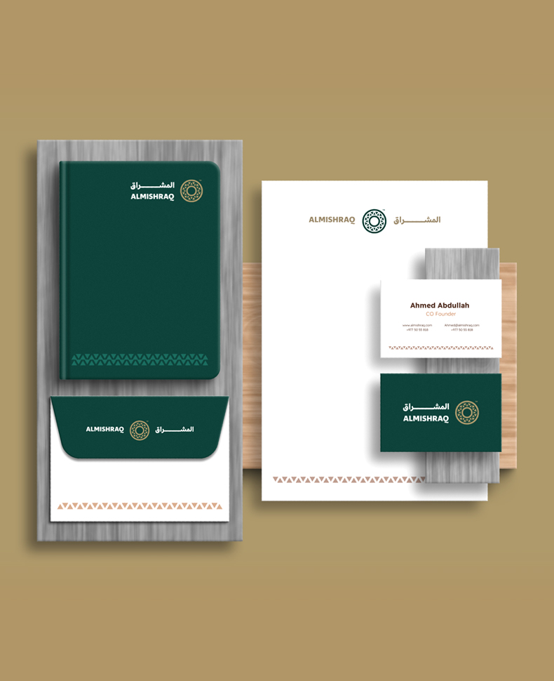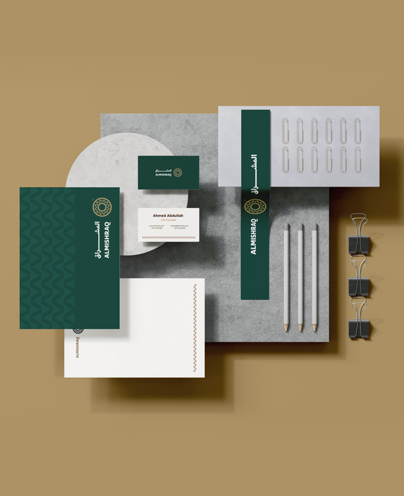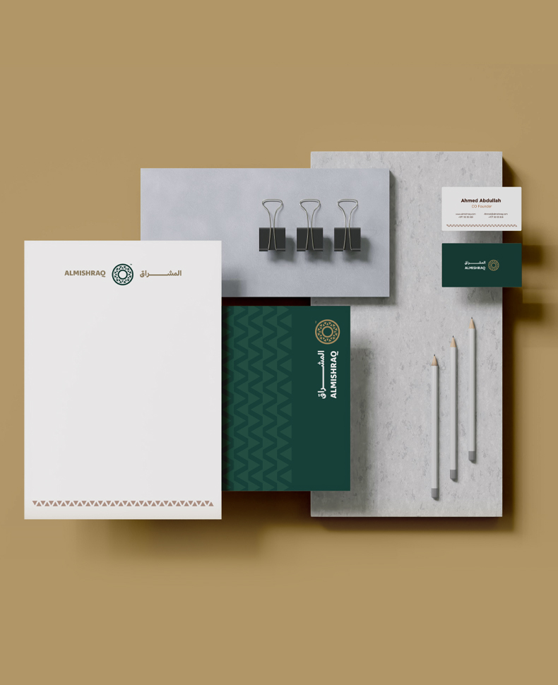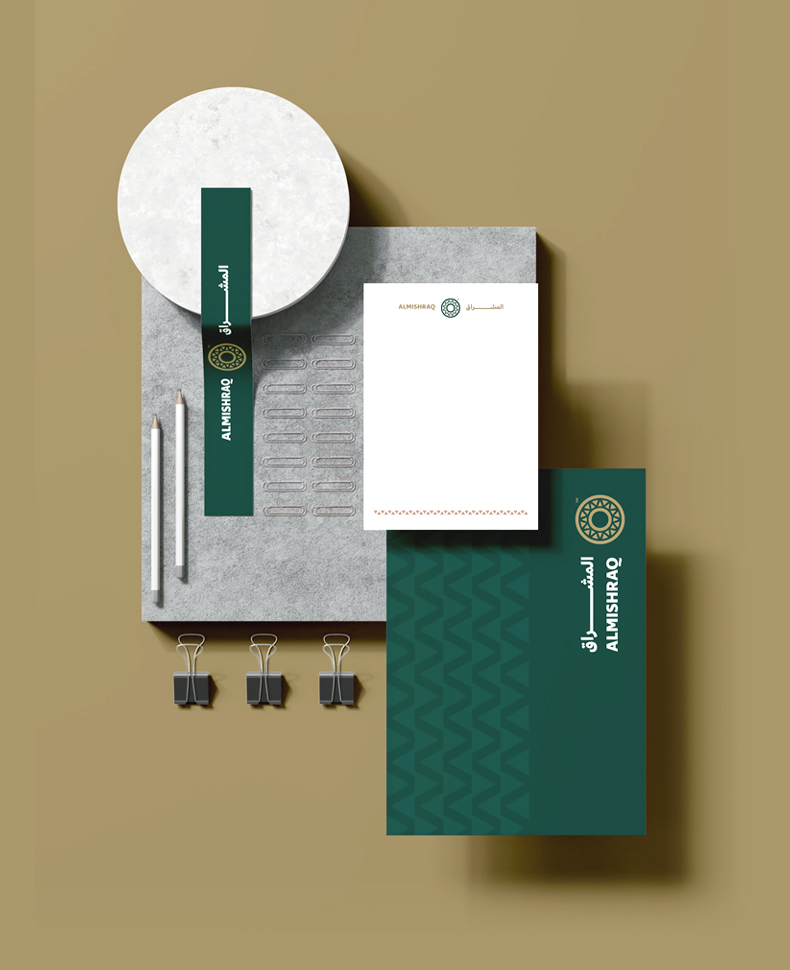 أحد أعمالنا في بناء الهوية البصرية المتخصصة بالمجال العقاري، وتم تصميمها عن طريق إبراز المعنى من الاسم عبر أيقونة دائرية تشير إلى إشراق الشمس بألوان تشير إلى النمو الازدهار و بنقوش نجدية توحي بالأصالة والعراقة.