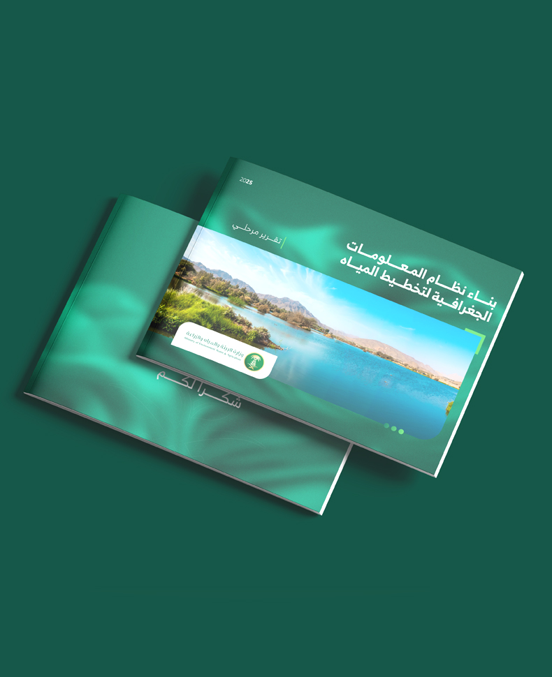 تصميم تقرير مؤسسي احترافي لصالح وزارة البيئة والمياه والزراعة، يعرض مشروعًا حيويًا بطريقة بصرية منظمة وجذابة.
