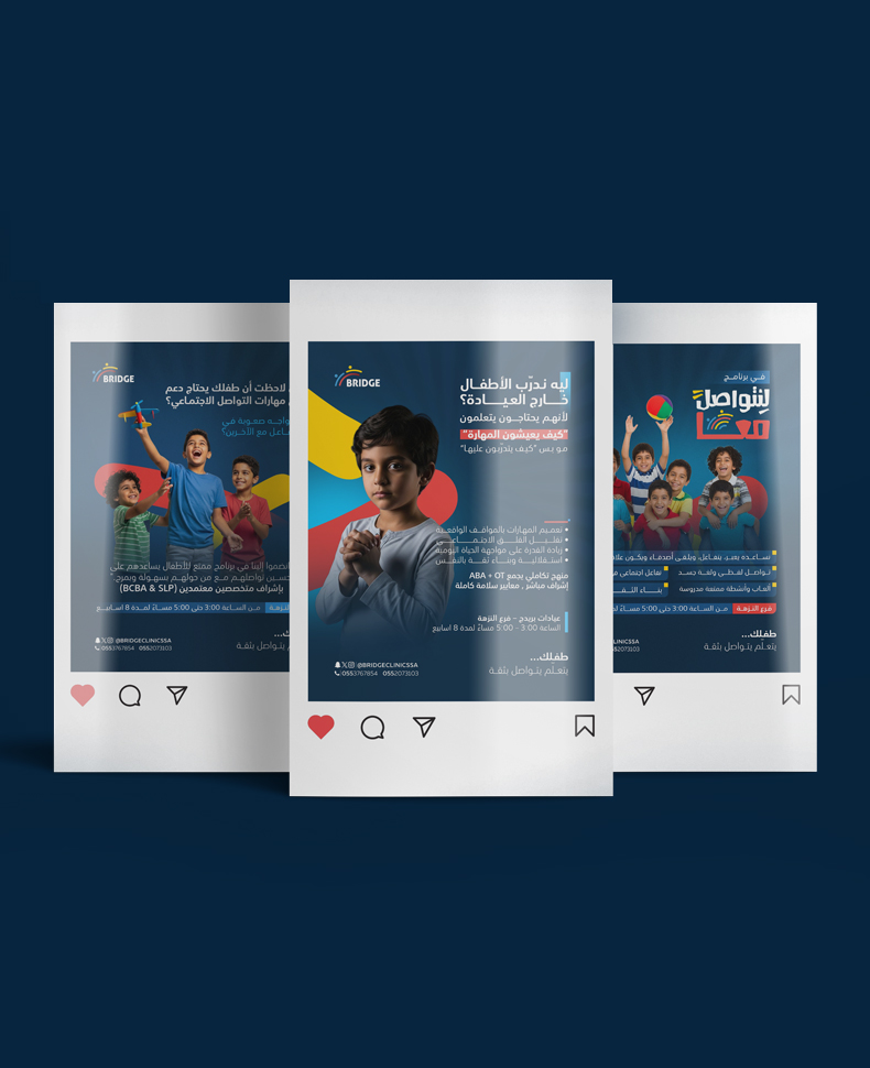 تصاميم إنفوجرافيك احترافية لعيادات بريدج تعكس الهوية البصرية وتدعم المحتوى التسويقي وتسهم في رفع جودة التواصل البصري مع الجمهور.